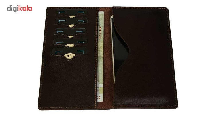 دارای جای موبایل تا 5.5 اینچ دارای جای پول در ابعاد بزرگ دارای 5 عدد جاکارتی و کارت ویزیت