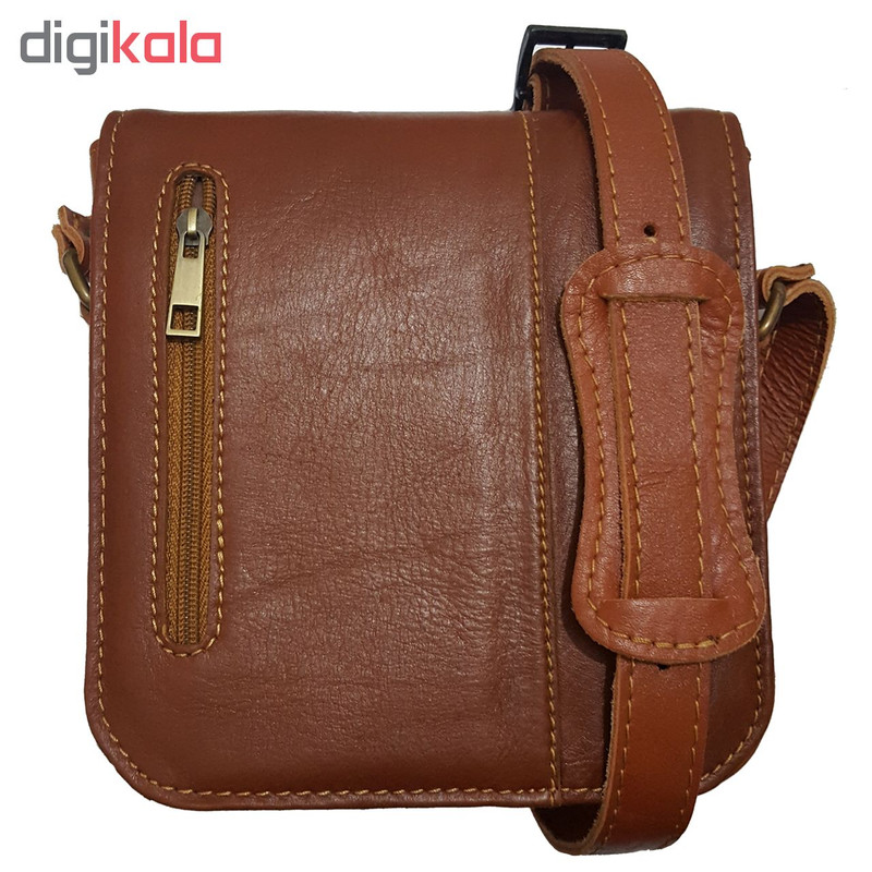 چرم طبیعی دارای بنددوشی قابل تنظیم ارتفاع دارای دوجیب زیپ دار در داخل کیف و یک جیب کوچیک بر روی درب کیف دارای یک جیب در پشت کیف