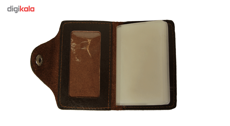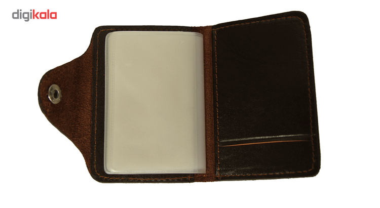 چرم طبیعی دارای 8 جای کارت دارای قفل دکمه دار دارای یک جای عکس و کارت ویزیت